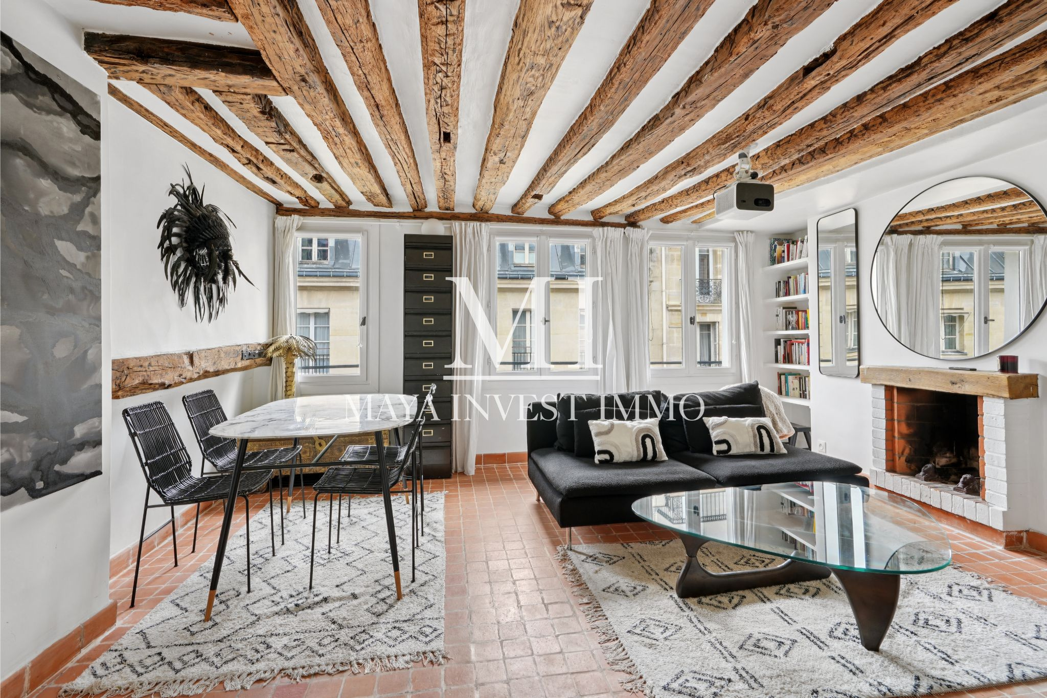 Situé dans l’un des quartiers les plus emblématiques de Paris, ce duplex de charme se trouve au 4ᵉ et 5ᵉ étage d’un immeuble du XVIIe siècle (daté de 1650), sans ascenseur, à deux pas de la Sorbonne, du Panthéon et du Jardin du Luxembourg.